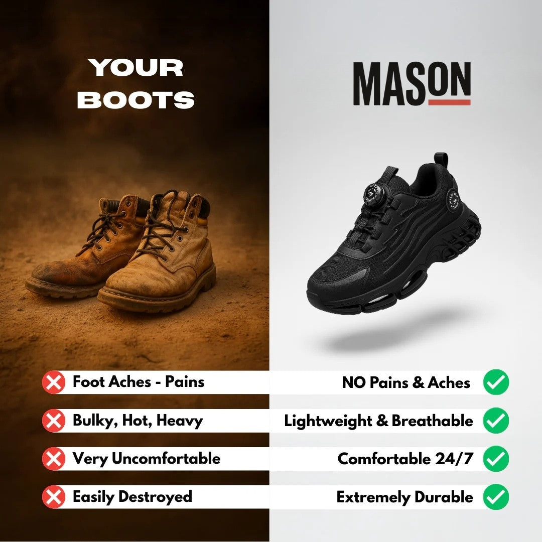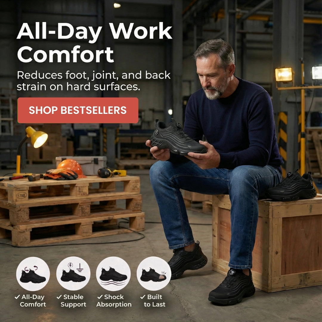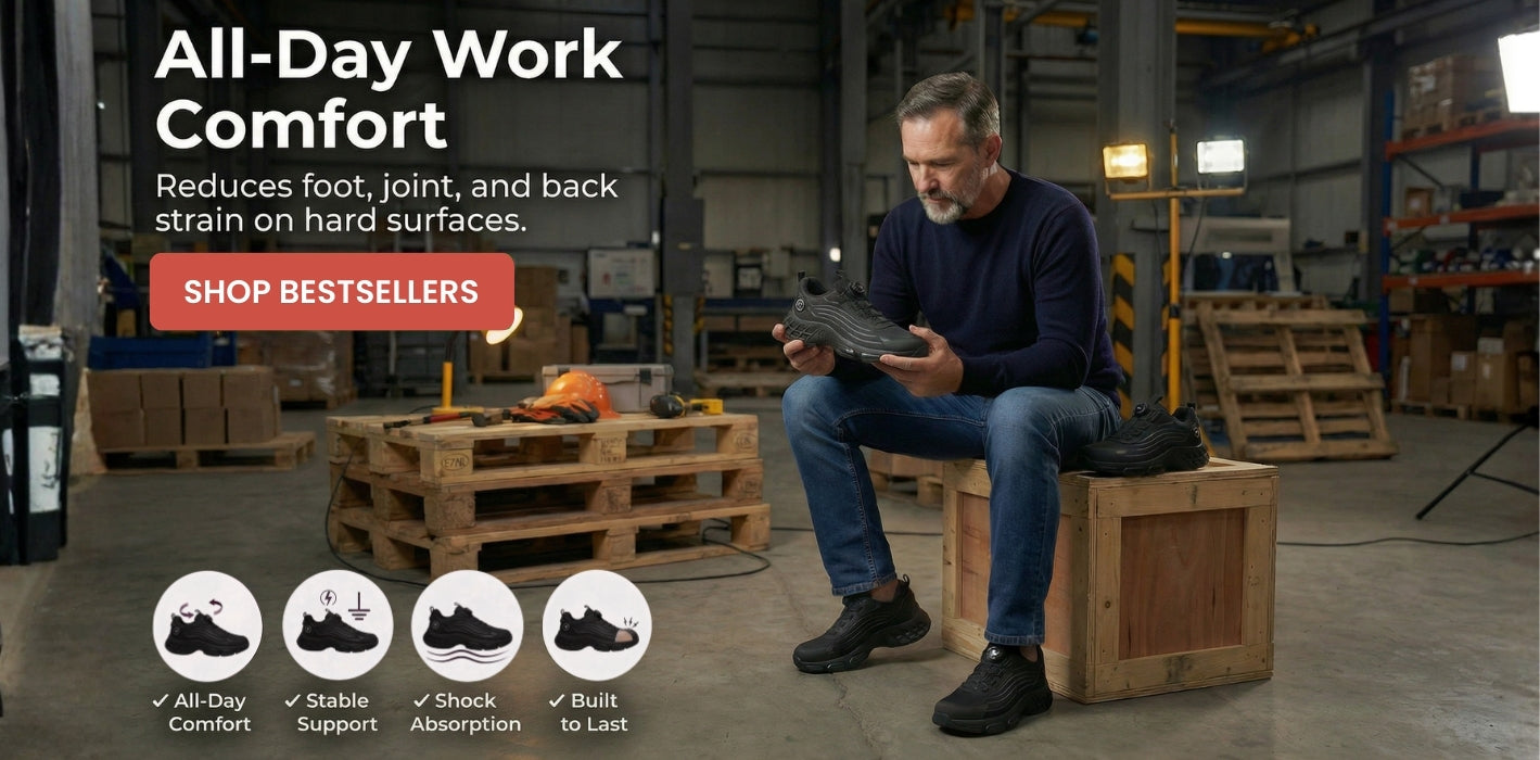I was a bit sceptical at first given the price and the claims, but I used to have back pain every evening with my old Puma safety shoes. After switching to these, the difference is night and day. I spend a lot of time kneeling and squatting while doing wiring jobs, and my feet don’t hurt anymore at the end of the day.